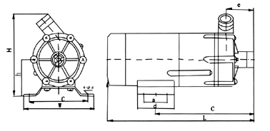 MPH-400磁力泵裝配的電動機可選配IEC標準尺寸71的0.3KW法蘭接口的電動機。